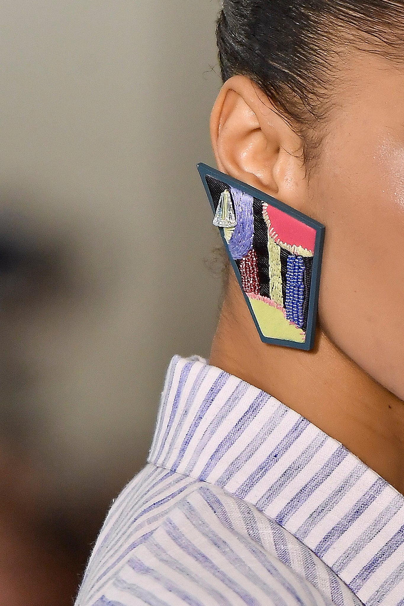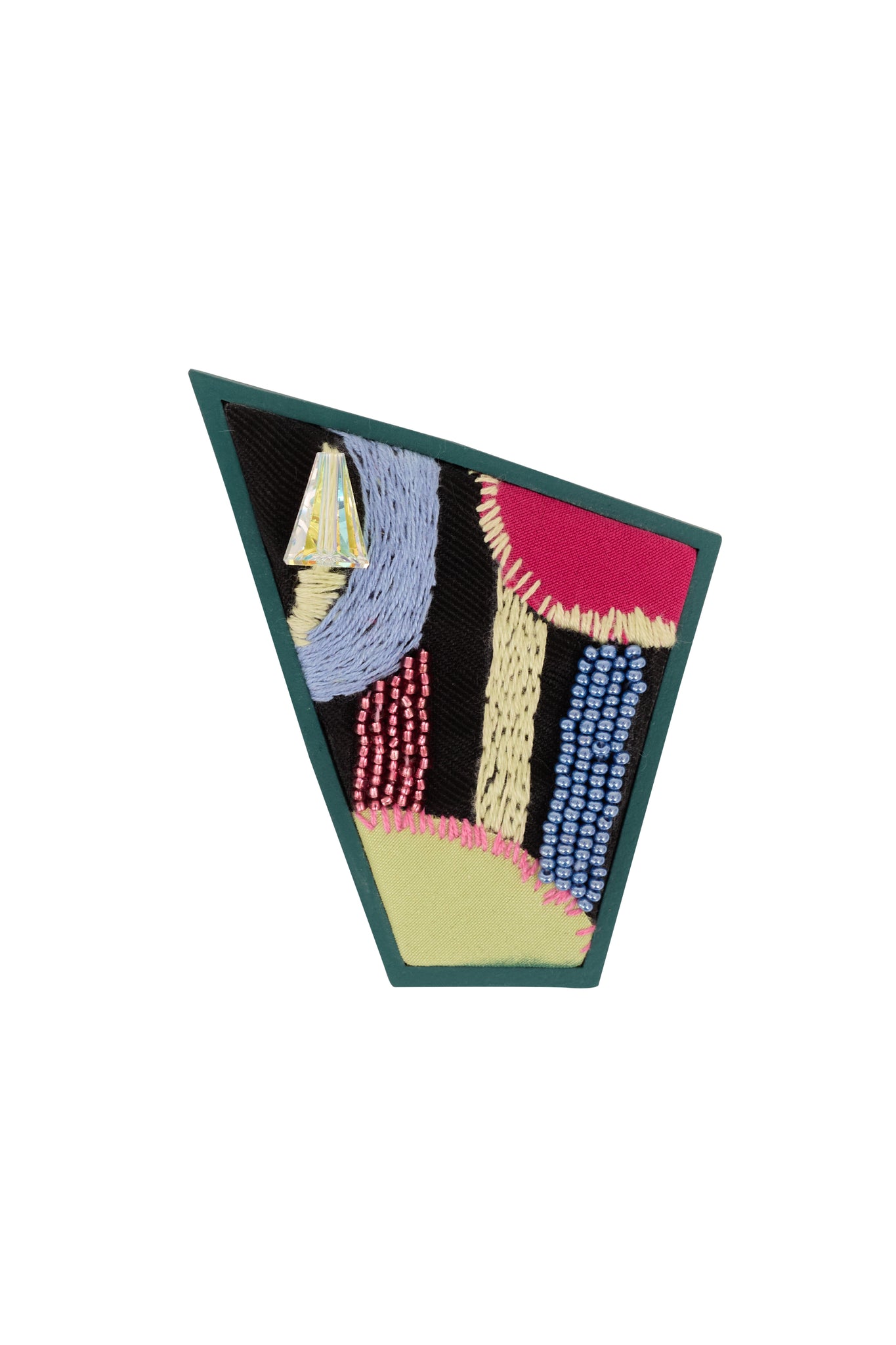 Brinco bordado em algodão, zibeline e crepe com miçangas e cristal Swarovski.