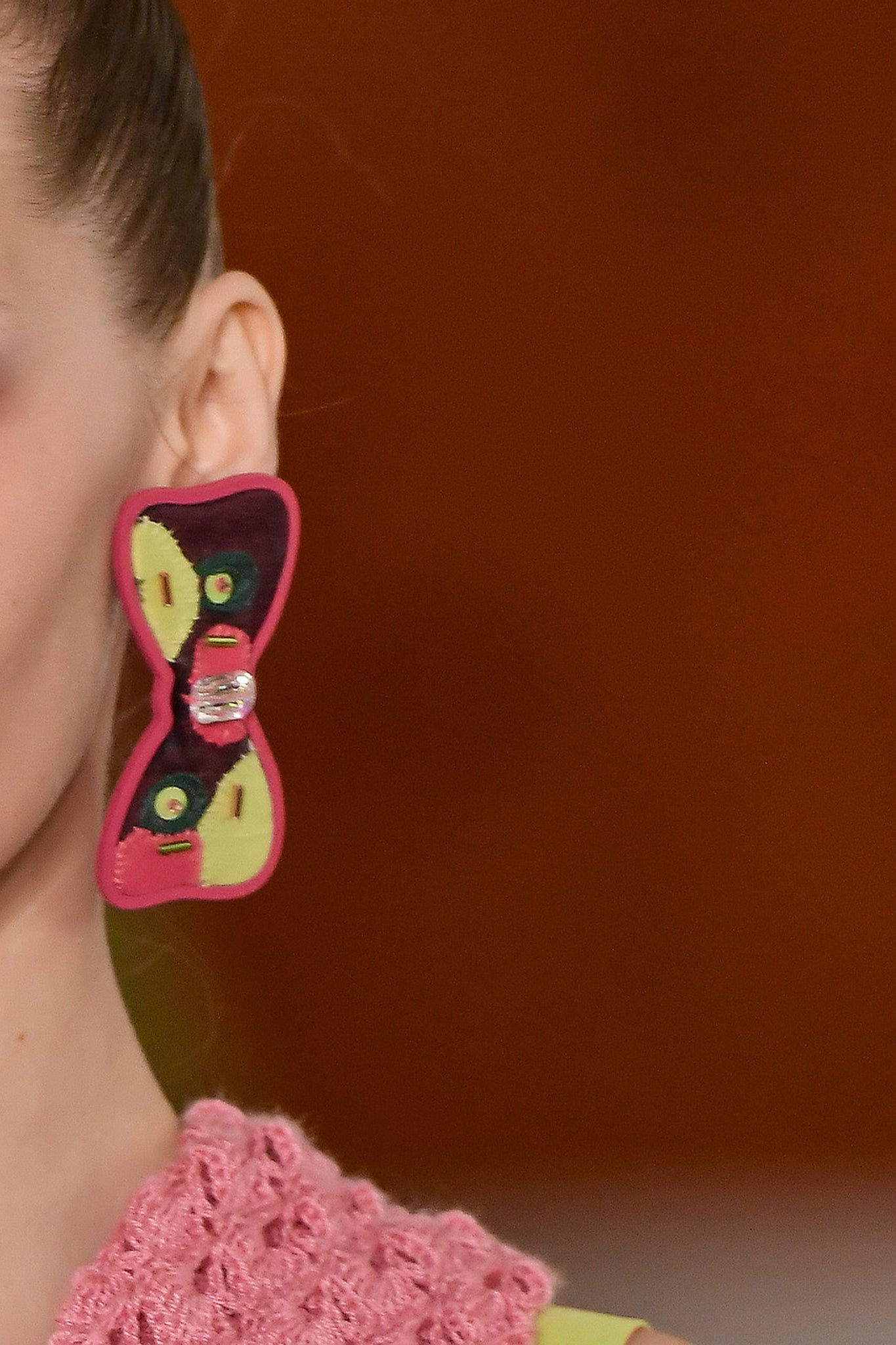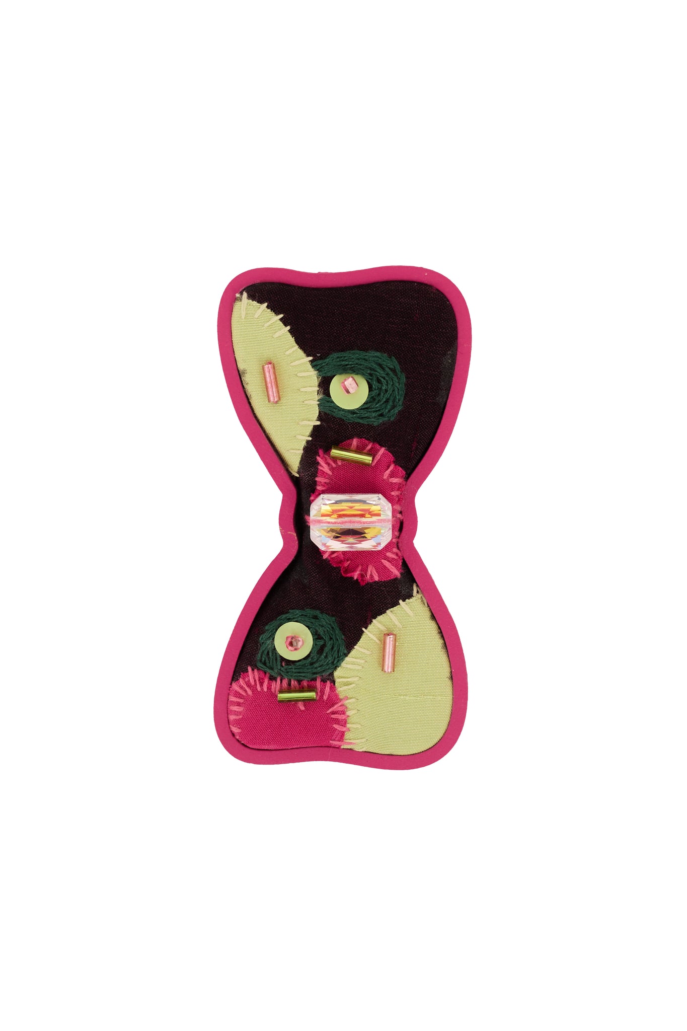 Brinco bordado em algodão, tafetá e crepe de viscose com miçangas, paetês, canutilhos e cristal Swarovski.