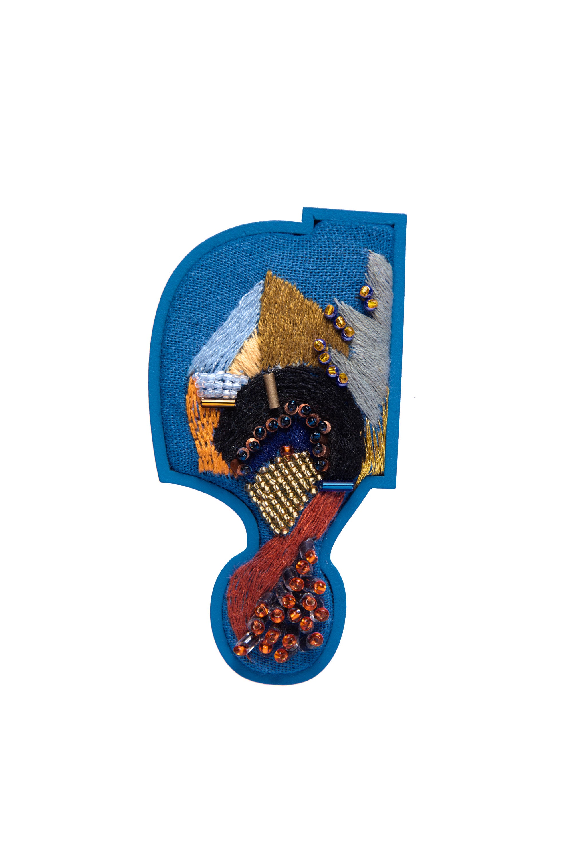 Brinco bordado em linho misto com miçangas e canutilhos.